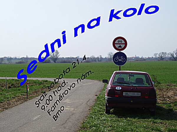 ![]() Upřímně zveme každého, kdo chce tento celosvětově významný den (Den Země, Earth day) oslavit v probuzené jarní přírodě bez řevu motorů. Tak vzdáme hold i našemu dopravnímu prostředku, bicyklu, bez něhož si čistější a ekonomičtější dopravu ve městě lze jen těžko představit. Jízdou na kole vyjádříme svůj pozitivní vztah k životnímu prostředí naší planety. Na akci bude dost času popovídat si o neradostném stavu cyklistické dopravy v Brně a poradit se, co s tím dělat. Sraz: v 9 hod. v parčíku na Faměrově náměstí v Černovicích, na úplném konci ulice Charbulova. Délka: 70 km Vede: Jiří Scholz Plán cykloakcí na Zelených stezkách Greenways Od přátel z Nadace Partnerství jsme